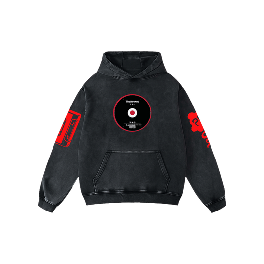 Midnight Vinyl Acid Wash Oversized Hoodie